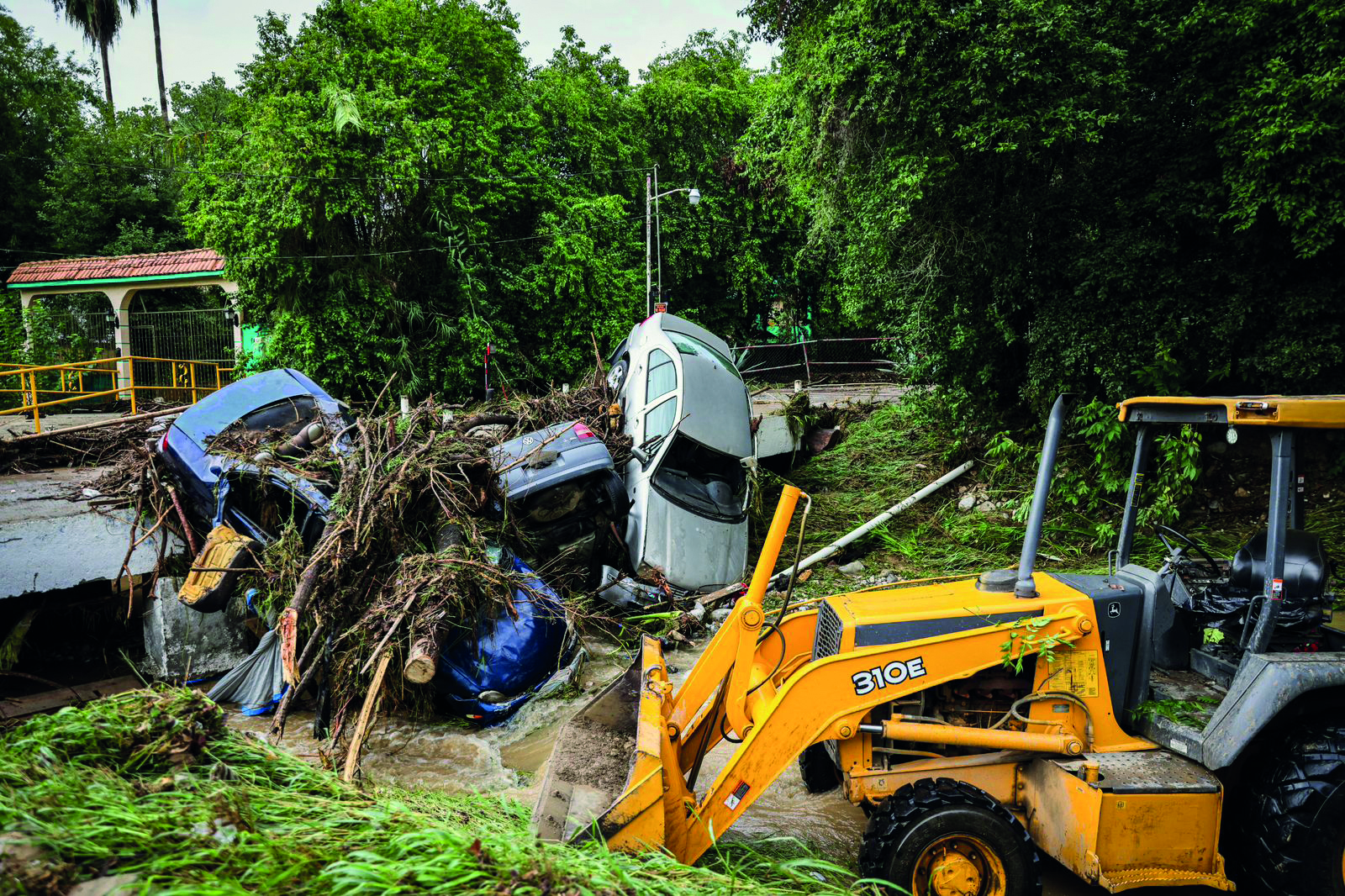 SANTIAGO.- Cinco vehículos fueron arrastrados por la corriente del arroyo La Chueca, en la zona de Los Cavazos, luego de las intensas lluvias registradas en la región.